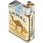А сам помахивает пакетом с рекламой сигарет "CAMEL".